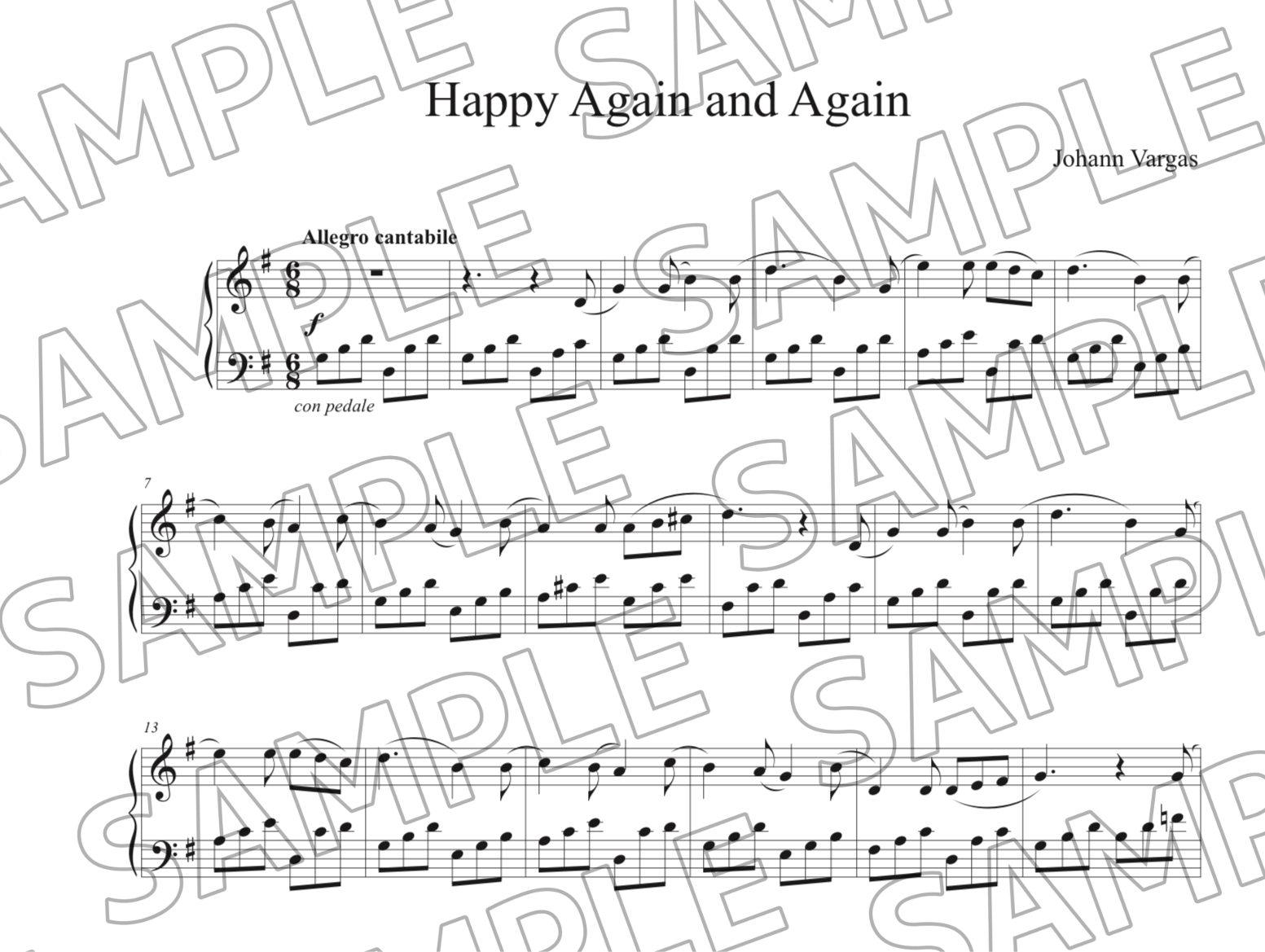 Sheet Music › Happy Again and Again Image 1 of 2 Image 2 of 2 Happy Again and Again $10.00 Advanced Level - Piano Solo - Driving 6/8 rhythm - Happy and fun Add To Cart Added! Advanced Level - Piano Solo - Driving 6/8 rhythm - Happy and fun